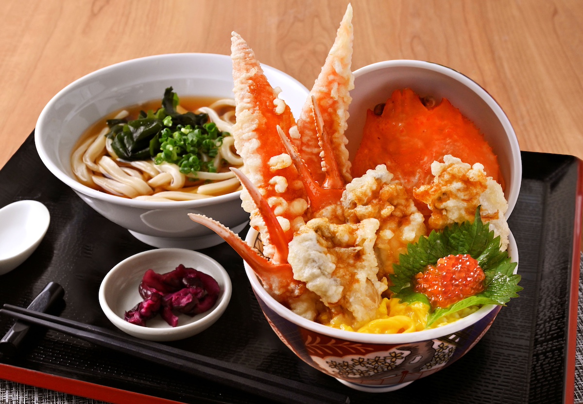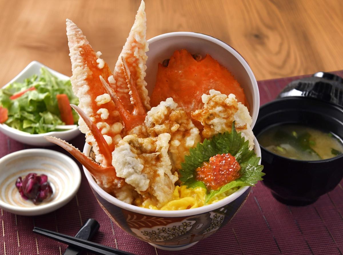 長崎料理店「和食 天ぷら 芳寿豚しゃぶしゃぶ 三代目 池袋じげもんとん」(豊島区南池袋1、TEL 03-6812-1868)が12月1日、「とじられない天丼"カキカニ合戦"」の販売を始めた。