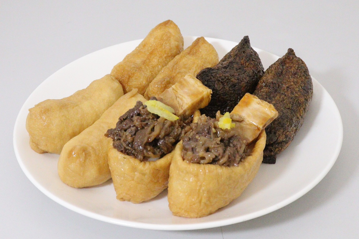 商品ラインアップは、「豆狸いなり」「わさびいなり」(以上130円)、「生姜(ショウガ)いなり」(141円)、「黒豆狸いなり」(152円)、「五目いなり」(173円)など。
