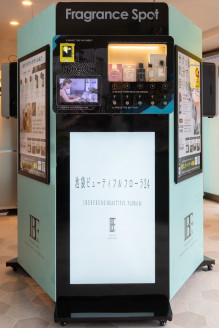 1回使用分の香水を噴射する「ワンプッシュ香水噴射機」を3台設置し、15種類の香水を用意する同店。利用料金は150円~500円で、キャッシュレス決済にのみ対応する。